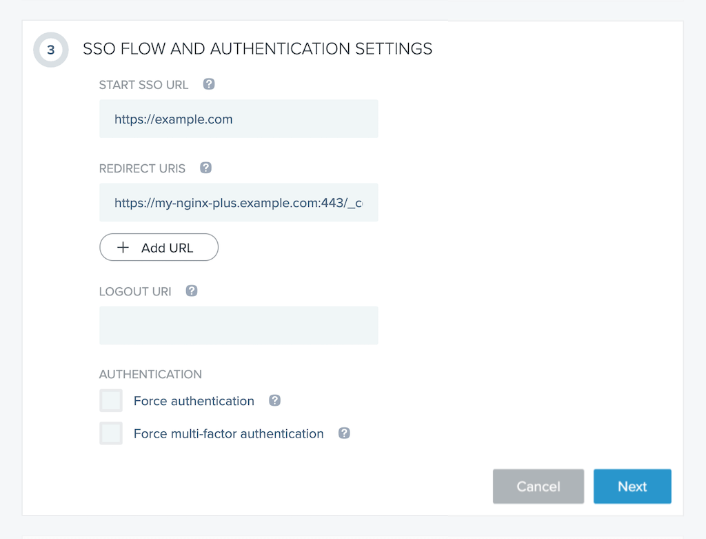 In the START SSO URL field, type the URL where users access your application. Here we’re using https://example.com.